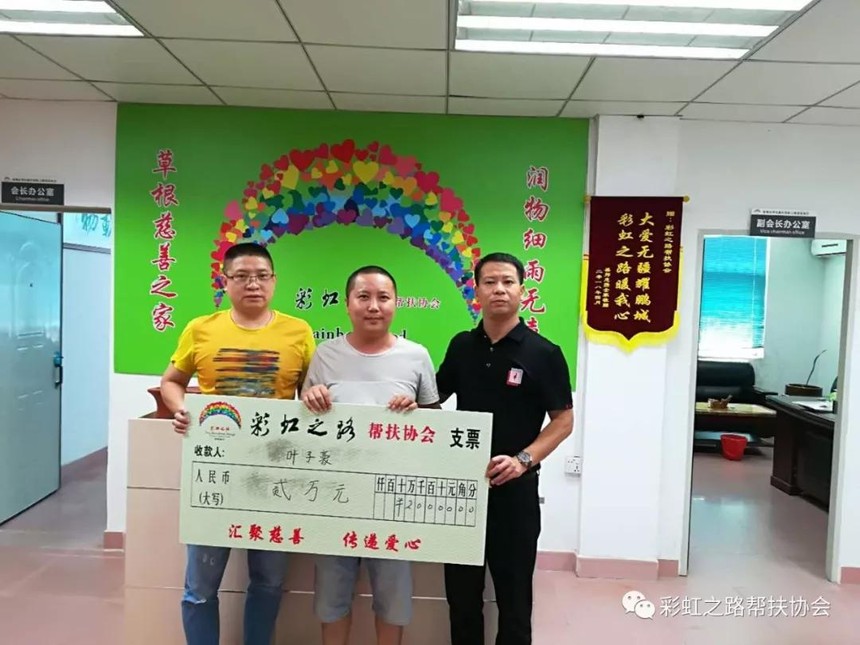 彩虹之路帮扶协会向重病患者叶子豪小朋友献爱心叶子豪来自福建省平和县,今年10周岁,就读于坪山二小,患有再生障碍性贫血(极重型)。目前治疗已花费10多万,后续仍需35万的手术费用。子豪一家五口的生活开支仅靠经营一家小卖铺的收入来维持;奶奶高血压,常年需要药物来控制;子豪突然患病后的巨额治疗费用,使这个家庭负债累累,后续的手术费用已无力承担。经吴遇春秘书长引荐,特向协会申请帮扶。经协会代表根据申请资料实地核查,情况属实,初审符合帮扶条件第一条。于是,协会理事会于2018年5月17日审核通过。