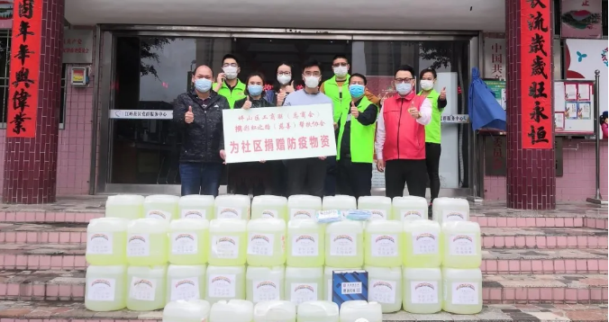 在坪山区工商联(总商会)的帮助与协调下,协会决定把其中的180桶消毒水捐赠给马峦街道属下的社区防疫检查点,其余的30桶消毒水,准备捐赠给有需要的学校。