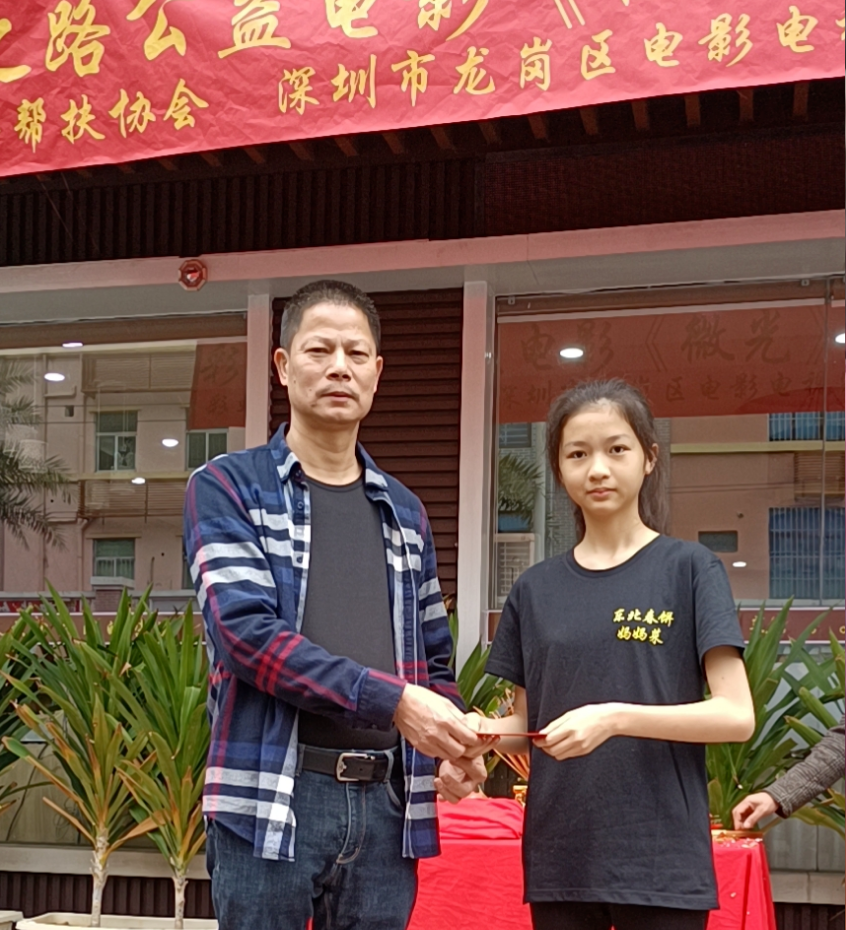 龙岗区电影电视家协会主席刘琼发表讲话。对彩虹之路帮扶协会坚持近十年帮扶困难学生的无私大爱表示崇高敬意。对彩虹之路帮扶协会和龙岗影协合作拍摄公益微电影表示大力支持。她相信通过主创团队的共同努力,定会拍出感人的作品,更好的宣传彩虹之路的大爱精神。她希望这部《微光》微电影会获得公益微电影奖。